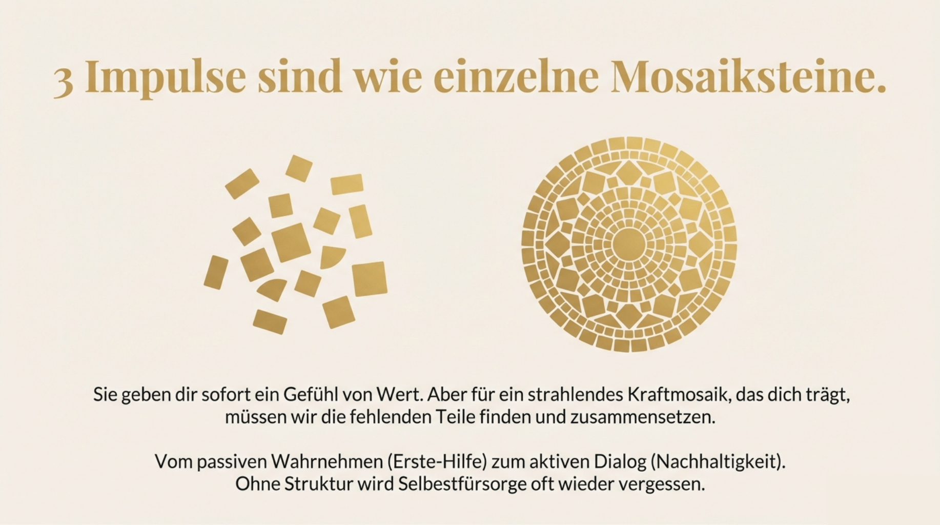 Diese 3 Impulse sind wie das Sammeln wunderschöner, aber einzelner Mosaiksteine. Sie geben dir sofort das Gefühl von Schönheit und Wert.